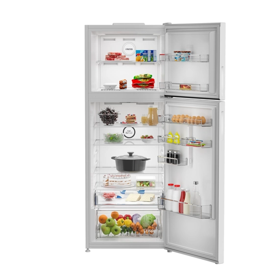 Genel Özellikler Ürün rengi Beyaz Dondurucu Yeri Dondurucu Üstte Kontrol Sistemi Elektronik Tatil Modu Var Aydınlatma Tavandan parlak LED Toplam hacim (L) 477 L Kapı Yönü Değiştirme Var Dondurucu Bölme Özellikleri Buzluk Tipi Kapaklı buzluk Günlük Dondurma Kapasitesi (kg/Gün) 5.6 kg Dondurucu Bölme Hacmi (L) 123 L Soğutucu Bölme Özellikleri Soğutma Sistemi No Frost