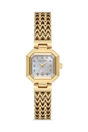 Dice Kayek DK.1.AG1423.05 Kare Kadran Minimal Taşlı Tasarım 3 Atm Suya Dayanıklı Altın Renk Kadın Kol Saati
