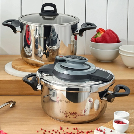 Emsan Montana İndüksiyon Tabanlı Düdüklü Tencere Seti Siyah Gri 4+6 Litre Gri