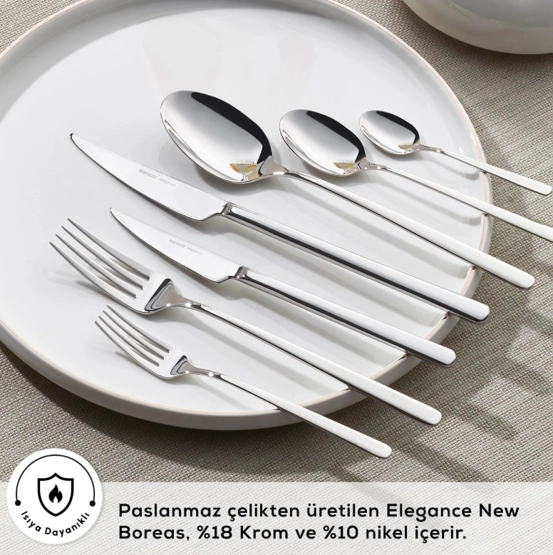 Karaca Elegance New Boreas Platin 12 Kişilik 84 Parça Çatal Kaşık Bıçak Takımı Gümüş
