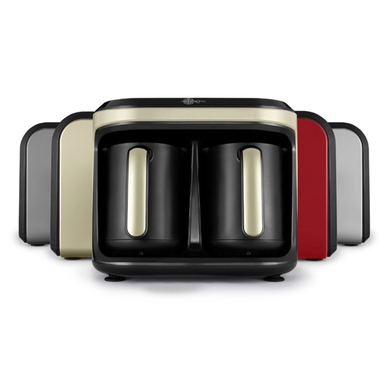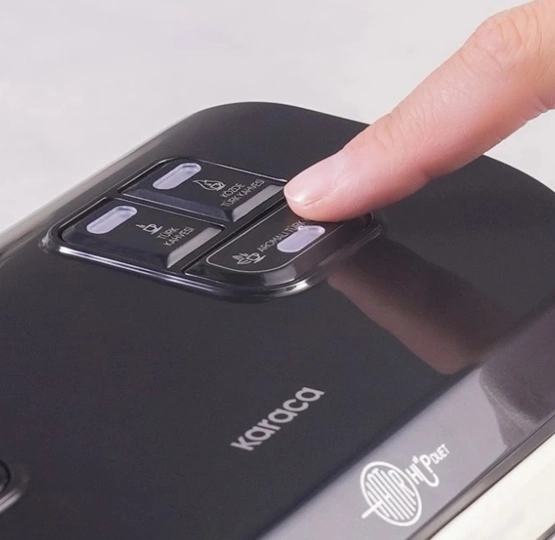 Karaca Hatır Hüp Düet Aroma Türk Kahve Makinesi Soft Cream Aromalı Türk Kahvesi Hüp Düet Aroma, Türk kahvesini modern konforla birleştirirken, aromalı kahvelerle de kahve keyfinizi zenginleştirmenize olanak tanır. Aromalı Türk kahveleri ile her fincanınız, sıradışı ve lezzet dolu bir deneyime dönüşür. Vanilya, damla sakızı, çikolata ve daha birçok aromalı kahveler ile kahve deneyiminizi zenginleştirmenize eşlik eder. Aromalı Türk Kahvesi Tarifi; Bir Türk kahve fincanı oda sıcaklığındaki taze suyu pişirme haznesinin içerisine dökünüz. Ürün kutusunun içerisinden çıkan “bol köpüklü ölçü kaşığı” ile 1 tam ölçü taze çekilmiş aromalı türk kahvesini pişirme haznesinin içerisine ekleyeniz. İdeal kıvam için pişirmeden önce pişirme haznesindeki malzemeleri bir kaşık ile karıştırınız. Türk kahveniz hazır olduğunda cihazınız sesli bir şekilde bilgi verecektir. Not: Hazne içerisine kahvenize aroma vermesi için ayrıca bir malzeme eklemeyiniz. Aromalı olarak hazırlanmış türk kahvelerini kullanınız. Közde Türk Kahvesi Közde Türk Kahvesi fonksiyonu sayesinde, odun közünün eşsiz aromasını ve tadını tek tuşla kahve fincanlarınıza getiriyoruz. Geleneksel Türk kahvesini hazırlamak hiç bu kadar kolay olmamıştı. 10 Fincan Geniş Kapasite Tek seferde 10 fincan kahve hazırlayabilme kapasitesi ile misafirlerinizi ağırlamak veya büyük aile buluşmaları için uygundur. Aynı Anda Kullanılabilir Çift Cezve İstertek seferde 10 fincan aromalı Türk kahvesi, ister 5 fincan közde Türk kahvesi ve 5 fincan aromalı Türk kahvesini aynı anda hazırlayın. İdeal Otomatik Pişirme Sıcaklığı Hüp Düet Aroma, seçtiğiniz içecek moduna göre kahveyi pişirme sıcaklığını otomatik belirler ve böylece kahvenizi yakmaz. Taşma Önleyici Sistem Taşma önleyici sistem, içeceğiniz hazırlanırken içeceğinizin yükselmesi durumunda otomatik olarak makinenizi durdurur. Böylece makinenizin başında beklemeden kahve makinenizi güvenle kullanabilirsiniz. Sesli İkaz İşlem tamamlandığında size bilgi veren sesli ikaz sistemi, size rehberlik eder.