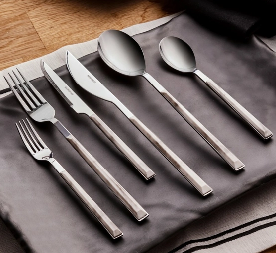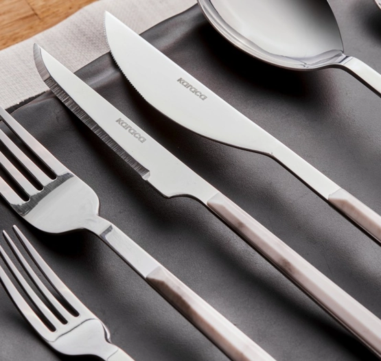 Karaca Leda Beyaz 6 Kişilik 36 Parça Çatal Kaşık Bıçak Takımı Gümüş
