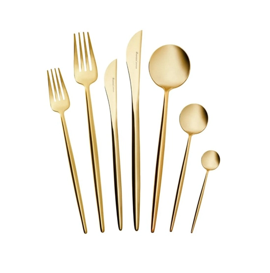 Karaca Orion 30 Parça 6 Kişiik Çatal Kaşık Bıçak Takımı Matte Gold Set İçeriği 6 Adet Yemek Bıçağı (22.5 cm) 6 Adet Yemek Kaşığı (21 cm) 6 Adet Yemek Çatalı (21.5 cm) 6 Adet Tatlı Çatalı (18 cm) 6 Adet Çay Kaşığı (13 cm) Malzeme: Çelik Özellikler Elde yıkanması tavsiye edilir.