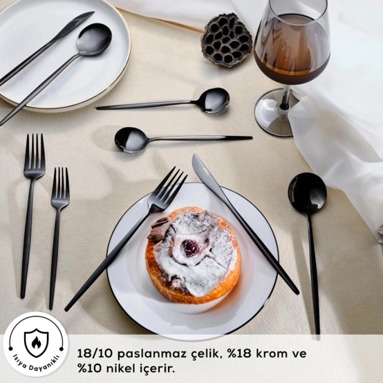 Karaca Orion 30 Parça 6 Kişilik Çatal Kaşık Bıçak Takımı Siyah
