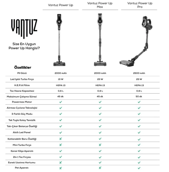 Karaca Vantuz Power Up Dikey Süpürge Rosegold Power Force ailesi yenilendi. Artık Park Et & Git Özelliği ile çok daha kolay bir kullanım sunuyor. Park Et & Git Özelliği sayesinde; süpürürken istediğiniz zaman süpürgenizi dik konumda bırakabilirsiniz. Bu sayede temizlik yaparken bir şey almak için durmanız gerektiğinde ya da başka bir iş ile uğraşmanız gerektiğinde süpürgenizi güvenle ve hızlı bir şekilde park edebilirsiniz. Powermax Motor: Vantuz Power Up, geliştirilmiş Powermax motor teknolojisi sayesinde tüm zeminlerde yüksek çekim gücü ile kusursuz temizlik sağlar. Airmax Cyclone: En güçlü torbasız süpürge teknolojisi Airmax Cyclone, hazne içerisindeki toz partiküllerinin ayrışmasını sağlar ve filtrelerin tıkanmasını önler. Böylece Vantuz Power Up, çok daha uzun süre yüksek performansla çalışır. Üç Aşamalı Filtre: 3 aşamalı HEPA, metal ve sünger katmanlı filtre sistemi sayesinde partiküllerin %99’unu hapsederek derinlemesine temizlik yapar. Led Işıklı Turbo Fırça: 15 W motor gücünde LED ışıklı turbo fırçası, tüm zeminlerde en ufak tozları bile göstererek derinlemesine temizlik sağlar. Quick & Click Toz Haznesi: 0,6 litrelik kolay çıkarılıp takılabilen toz haznesi tek tuşla etrafa toz dağılmadan daha hijyenik bir şekilde boşaltılabilir. Üç Farklı Güç Modu: Eco, Power ve Turbo olarak üç farklı moda sahip Vantuz Power Up, zemin ve kir tipine göre modlar arasında geçiş yaparak daha uzun çalışma süresi sunar. Farklı zeminlerde aktif temizlik sağlar. Tak-Çıkar Batarya: Çıkarılabilir batarya teknolojisi sayesinde, Vantuz Power Force süpürgeniz istenilen yerde veya askısında kolayca şarj edilebilir. Üstelik 2000 mAh batarya ile 45 dk kesintisiz temizlik imkânı sunar. Ergonomik Tasarım: Ergonomik tasarımı ve kolay manevra kabiliyeti sayesinde ulaşılması güç yerlere bile zorlanmadan ulaşır. Aparatlar: Kenar-Köşe Aparatı Kenar-köşe aparatı ile duvar diplerinde ve ulaşılması zor köşelerde biriken tozları rahatça temizleyebilirsiniz. 2 in 1 Toz Fırçası Vantuz Power Up 'ın 2 in1 Fırçası ile koltuk, perde gibi yüzeylerin temizliğini kolayca yapabilirsiniz.