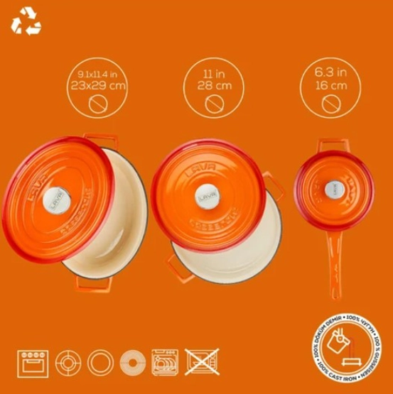 Lava Döküm 3x Edition Serisi Özel Koleksiyon Döküm Demir Tencere Seti - Turuncu