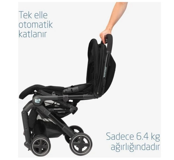 Maxi-Cosi MaxiCosi Lara2 Ultra Kompakt Otomatik Katlanan Kabin Boy Seyahat Sistem Olabilen Bebek Arabası Essential Black