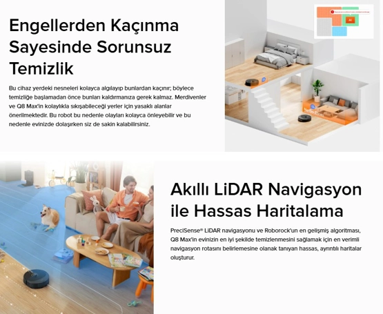 Anahtar Özellikler -Tek Geçişte Süpürme ve Paspaslama -5500Pa Yüksek Güçlü Emiş Gücü -DuoRoller™ Fırça -Reaktif Teknoloji Engellerinden Kaçınma -PreciSense® LiDAR Navigasyonu -Uyarlanabilir Rota Algoritmaları -Kusursuz Zemin Temizliği -Özelleştirilebilir Uygulama Özellikleri -ScratchSafe® Tekerlekler ve Fırçalar -Alexa ve Google Home ve Apple Siri ile çalışın -Yoğun Olmayan Şarjlar Destekleniyor -Yalnızca 2.4 GHz Wi-Fi'yi destekler. 5 GHz desteklenmez.
