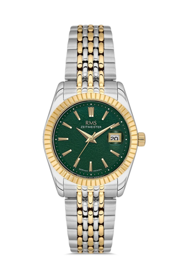 Rms Zeitmeister RMS.1.AG2126.49 Takvimli Kristal Camlı 5 Atm Suya Dayanıklı Metalik-Altın Renk Kadın Kol Saati Çok Renkli