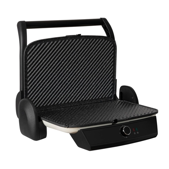 Ayarlanabilir yükseklik özelliğiyle tostun içerisindeki malzemeler dağılmadan rahatça tostunuzu hazırlayabilirsiniz. 5 kademeli ısı ayarıyla sıcaklığı pişireceğiniz yiyeceğe göre tek tuşla ayarlayabilirsiniz. Aynı anda 6 adete kadar tost hazırlamaya imkan sağlayan geniş plakalarıyla geniş aileler için tost hazırlamak artık çok kolay. 180 derece açılabilir gövdesi sayesinde ızgara keyfini daha geniş alanda yaşayabilirsiniz. Isıyı uzun süre muhafaza edebilen döküm plakalarıyla Vestel Retro T7000 Tost Makinesi, tırtıklı yüzeyinde tostun yanı sıra tavuk, balık, et gibi ızgara yapmanıza; düz yüzeyinde omlet, pankek, gözleme hazırlamanıza olanak sunar. Yüksek gücü sayesinde yüksek sıcaklıklara ulaşabilen Vestel Retro T7000 Tost Makinesi’ni tostun yanı sıra ızgara yapmak için de kullanabilirsiniz.