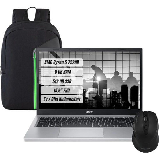 Acer Aspire 3 A315-24 Amd Ryzen 5 7520U 8gb 512GB SSD Freedos 15.6" Fhd Taşınabilir Bilgisayar NX.KDEEY.005 + Çanta ve Mouse 500 GB