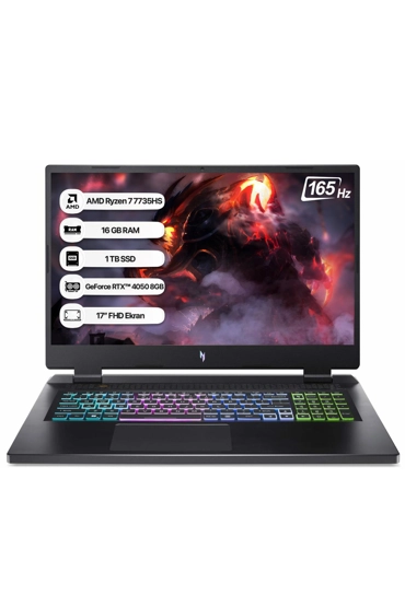 Acer Nitro 17 NH.QL1EY.003 Ryzen 7-7735HS 16GB 1TB SSD RTX4050-8GB 17.3"FHD 165Hz Linux Taşınabilir Bilgisayar Siyah 1 TB