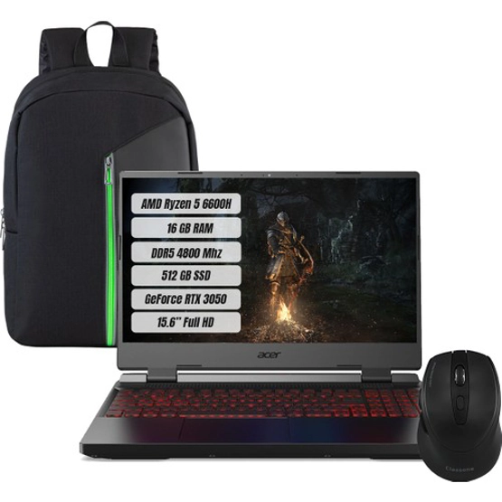 Acer Nitro 5 AN515-46 Amd Ryzen 5 6600H 16 GB 512 GB SSD Rtx 3050 Freedos 15.6" Fhd 144 Hz Taşınabilir Bilgisayar NH.QGXEY.001-16 + Çanta ve Mouse Yok