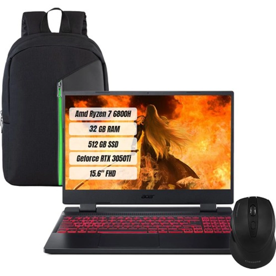 Acer Nitro 5 AN515-46 AMD Ryzen 7 6800H 32GB 512GB SSD RTX 3050TI Freedos 15.6" FHD Taşınabilir Bilgisayar NH.QGYEY.004-32 + Çanta ve Mouse Yok