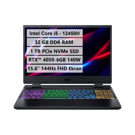 Acer Nitro 5 AN515-58-524A Intel Core I5-12450H 32GB Ddr5 Ram 1tb M.2 SSD Rtx 4050-6GB-140W Freedos NH.QLZEY.009-01