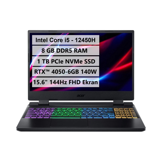 Acer Nitro 5 AN515-58-524A Intel Core i5-12450H 8GB DDR5 Ram 1TB M.2 SSD RTX 4050-6GB-140W FreeDos NH.QLZEY.009
