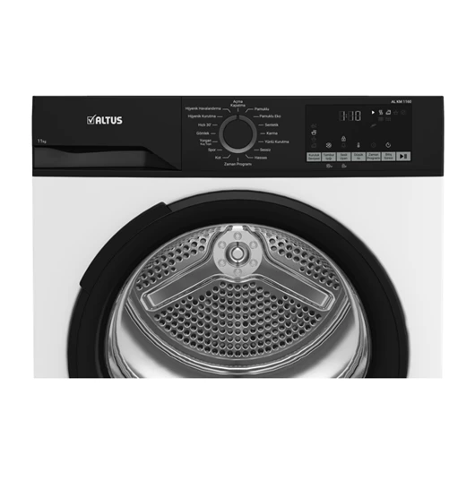 Yıllık Enerji Tüketimi (kWh): 333.8 kWh Ses Gücü Seviyesi (dBA): 64 Dba Kurutma Tipi: Yoğuşturmalı-Isı Pompalı Kurutma Kontrol Tipi: Sensör Kontrollü Tambur deseni (DR): Su dalgası Enerji Verimliliği Sınıfı_ EU_2025 (DR): E Kapasite (kg): 11 kg Program Sayısı: 15 Tambur Hacmi (L) : 127 Ürün Rengi: Beyaz Ambalajsız Derinlik (cm) 67.3 cm Ambalajsız genişlik (cm)(x) 59.8 cm Ambalajsız Yükseklik (cm)(y) 84.6 cm Ambalajsız Ağırlık (kg) 43.5 kg Program - 1 Cottons Program - 2 Pamuk Eko Kuruluk Program - 3 Synthetics Program - 4 Mix Program - 5 Wool Program - 6 Silent (Night) Program - 7 GentleCare Program - 8 Time programmes Program - 9 Jeans Program - 10 Outdoor/Sports (Goretex) Program - 11 Duvet / Downwear Program - 12 Shirts Program - 13 Xpress Super Short Program - 14 Hygienic Drying Program - 15 Hygienic Refresh Tank Pozisyonu Üst Program Takibi Var Kalan Zaman Göstergesi Var Durum Işığı DC LED Su Deposu Dolu Göstergesi Var Kondenser Temizleme Göstergesi (LED) Var Çocuk Kilidi Var Filtre Tipi Combined