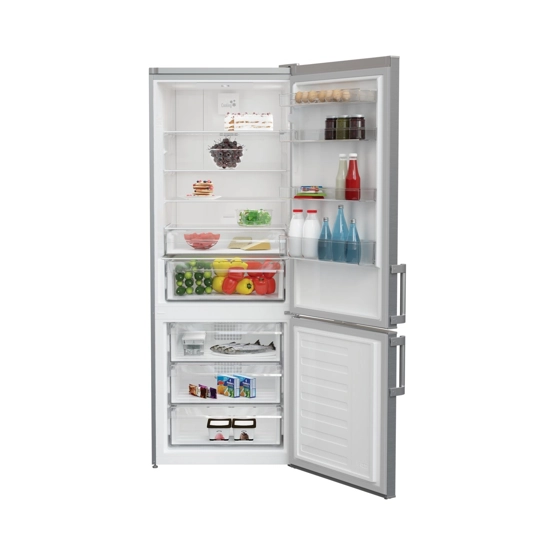 Nofrost buzdolaplarında dondurucu bölmede karlanma, buzlanma ve terleme olmaz. Defrost ( buz eritme) işlemi otomatiktir. Ürün Özellikleri Ürün Rengi : İnoks Toplam Hacim (L) : 514 L Toplam Dondurucu Bölme Sayısı : 3 Dondurucu Çekmece Sayısı : 3 Tatil Modu : Var Elektronik Gösterge : Var Şarj (kg) : 0.060 Hızlı Dondurma : Var Hızlı Soğutma : Var Kontrol Sistemi : Elektronik 0°c Bölmesi : Var Eco Modu : Var Soğutma Sistemi : No Frost Kapı Yönü Çevirebilme : Var Kapı Açık Alarmı : Var Aydınlatma Tipi : Tavandan LED ( power led ) Sebzelik Adedi : 1 Buzluk Tipi Kapaklı buzluk (x1) - : Buz hazneli Günlük Buz Yapma Kapasitesi (kg) : 1 Derinlik : 74.5 cm Genişlik : 70.0 cm Yükseklik : 192.0 cm