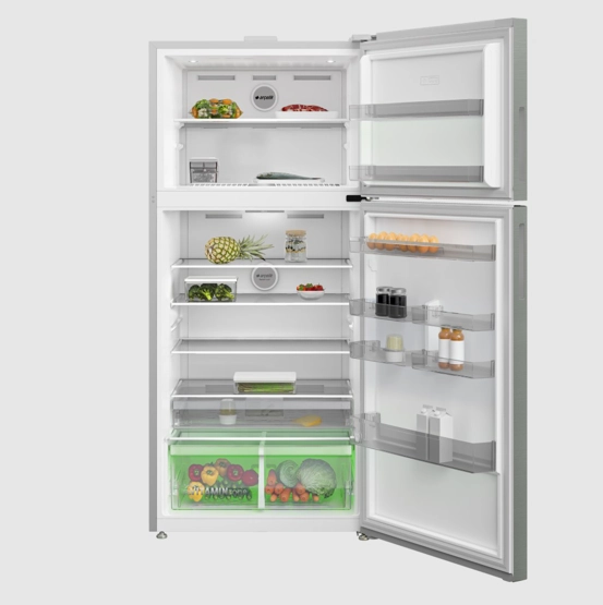 Çekilebilen cam raflar sayesinde buzdolabındaki her şeye rahatça ulaşılabilir, yiyecekler kolayca alınıp geri konulabilir.