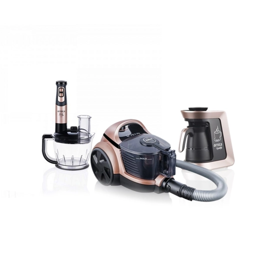 Arnica Rose Gold Çeyiz Seti; Çeyiz Paketi İçeriği : -Arnica Tesla Premium ET14300 Toz Torbasız Elektrikli Süpürge Rose Rosegold, Arnica GH32050 Köpüklü Türk Kahve Makinesi Renk: Rose Gold Rosegold, Arnica GH21802 Diva Trend Pro El Blender Seti Renk Rose Gold Siyah