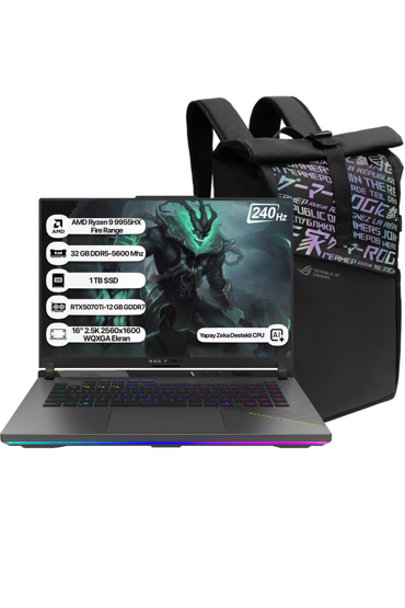 Asus Rog Strix G16 G614FR-S5111 AMD Ryzen 9 9955HX 32GB 1TB SSD RTX5070Ti-12GB Freedos 16" 2.5K 240Hz WQXGA Taşınabilir Bilgisayar + Rog BP4701 Gaming Backpack