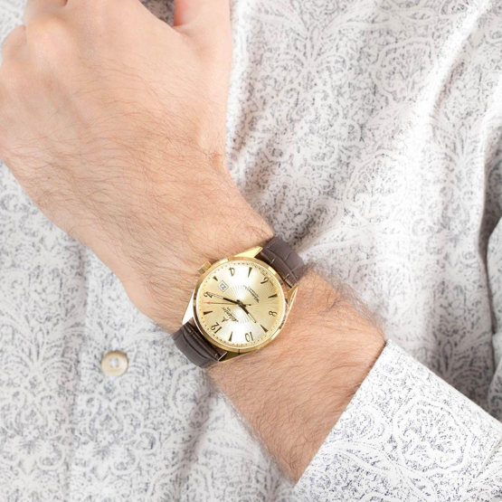 Kasa Çapı: 40 mm - Kasa Şekli: Yuvarlak - Kasa Materyali: Çelik - Kasa Rengi: Altın - Kordon Materyali: Deri - Kordon Rengi: Kahverengi- Kadran Rengi: Şampanya - Kadran Işığı: Yok - Taş: Yok - Çalışma Şekli: Analog - Teknolojisi: Otomatik - Takvim: Var - Kronometre: Yok - Alarm: Yok - Cam Özelliği: Safir - Özellik: - Su Geçirmezlik: 5 ATM - Garanti Süresi: 2 YIL - Cinsiyet: Erkek
