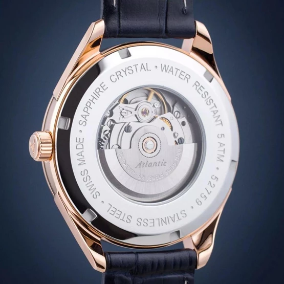 Kasa Çapı: 42 mm - Kasa Şekli: Yuvarlak - Kasa Materyali: Çelik - Kasa Rengi: Rose Gold - Kordon Materyali: Deri - Kordon Rengi: Lacivert- Kadran Rengi: Lacivert - Kadran Işığı: Yok - Taş: Yok - Çalışma Şekli: Analog - Teknolojisi: Otomatik - Takvim: Var - Kronometre: Yok - Alarm: Yok - Cam Özelliği: Safir - Özellik: - Su Geçirmezlik: 5 ATM - Garanti Süresi: 2 YIL - Cinsiyet: Erkek