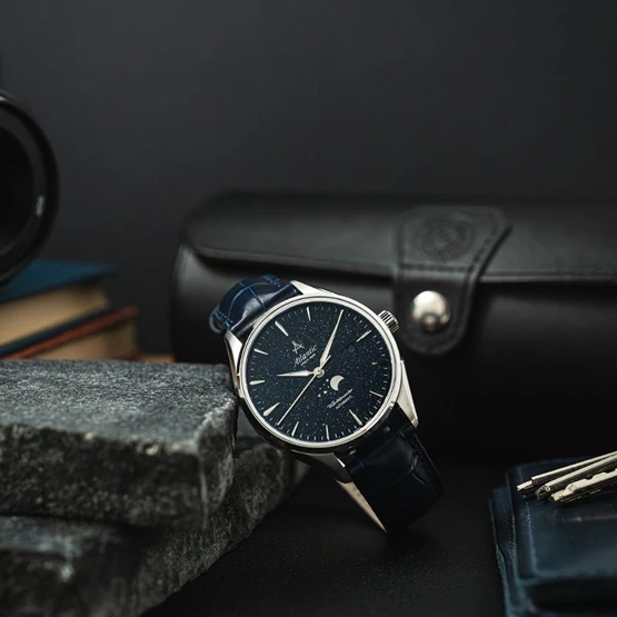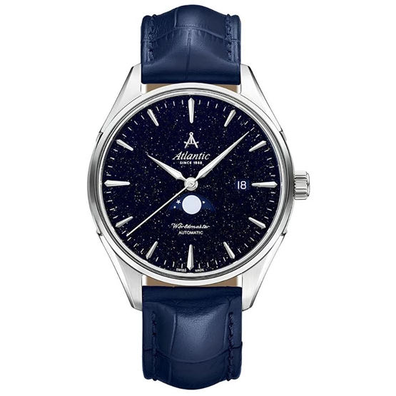 Kasa Çapı: 42 mm - Kasa Şekli: Yuvarlak - Kasa Materyali: Çelik - Kasa Rengi: Gümüş - Kordon Materyali: Deri - Kordon Rengi: Lacivert- Kadran Rengi: Lacivert - Kadran Işığı: Yok - Taş: Var - Çalışma Şekli: Analog - Teknolojisi: Otomatik - Takvim: Var - Kronometre: Yok - Alarm: Yok - Cam Özelliği: Safir - Özellik: Tarih Göstergesi, Ay Evresi Göstergeli Mavi Aventurin Taşlı Kadran - Su Geçirmezlik: 5 ATM - Garanti Süresi: 2 YIL - Cinsiyet: Erkek