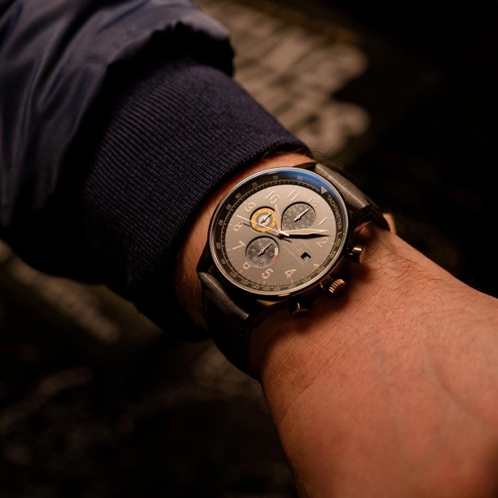 Kasa Çapı: 43 mm - Kasa Şekli: Yuvarlak - Kasa Materyali: Çelik - Kasa Rengi: Rose Gold - Kordon Materyali: Deri - Kordon Rengi: Gri- Kadran Rengi: Gri - Kadran Işığı: Yok - Taş: Yok - Çalışma Şekli: Analog - Teknolojisi: Quartz - Takvim: Var - Kronometre: Var - Alarm: Yok - Cam Özelliği: Mineral - Özellik: - Su Geçirmezlik: 5 ATM - Garanti Süresi: 2 Yıl - Cinsiyet: Erkek