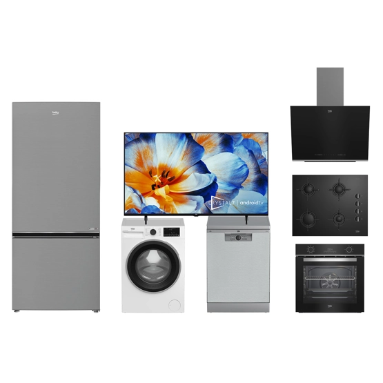 Beko 678550 IEI No Frost Buzdolabı + Beko BM 4044 I Bulaşık Makinesi + Beko CM 9103 B Çamaşır Makinesi + Beko BDE 6062 S Davlumbaz + Beko BOCD 6510 ES Ankastre Ocak + Beko BFC 430 S Ankastre Fırın + Beko B55 D 790 D Andorid 4K Televizyon