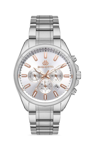 Bigotti BG.1.10328.1 Tüm Fonksiyonları Aktif 5 ATM Su Geçirmezlik Değerine Sahip Çelik Kordon Çelik Kasa Metalik Renk Erkek Kol Saati