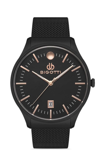 Bigotti BG.1.10366.3 Hasır Kordon Takvimli Çelik Kasa 5 Atm Su Geçirmezlik Siyah Renk Erkek Kol Saati