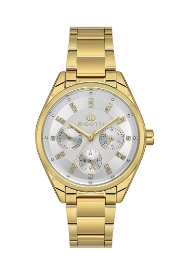 Bigotti BG.1.10478-2 Tüm Fonksiyonları Aktif Çelik Kordonlu Altın Renk Kadın Kol Saati