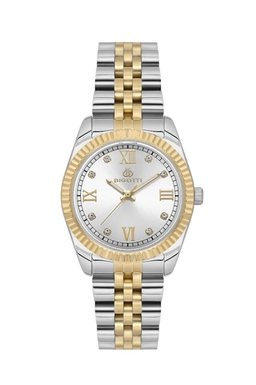 Bigotti BG.1.10586-4 Taşlı Tasarım Çelik Kaplama Metalik-Altın Kadın Kol Saati