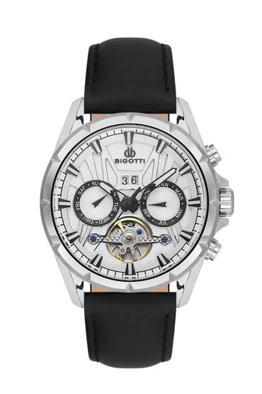 Bigotti BG.1.10598-1 Deri Kordon Otomatik Mekanizma Çelik Kaplama Siyah Erkek Kol Saati