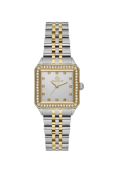 Bigotti BG.1.10599-4 Kare Kadran Taşlı Tasarım 3 Atm Su Geçirmezlik Metalik-Altın Renk Kadın Kol Saati