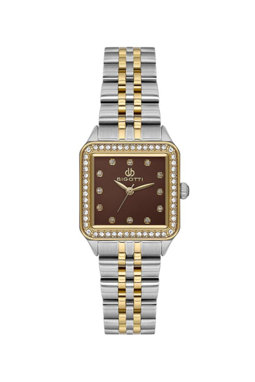 Bigotti BG.1.10599-5 Kare Kadran Taşlı Tasarım 3 Atm Su Geçirmezlik Metalik-Altın Renk Kadın Kol Saati
