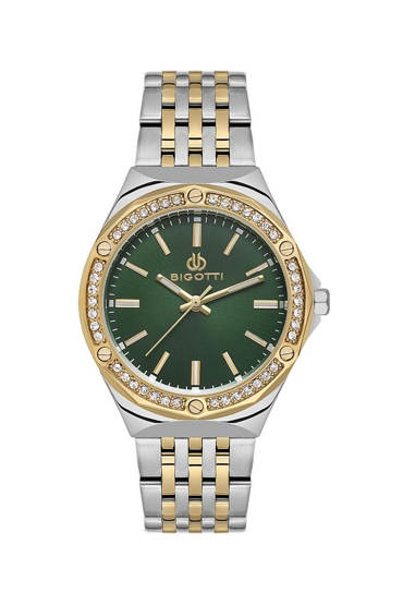 Bigotti BG.1.10609-5 Taşlı Tasarım 3 Atm Su Geçirmezlik Metalik-Altın Renk Kadın Kol Saati