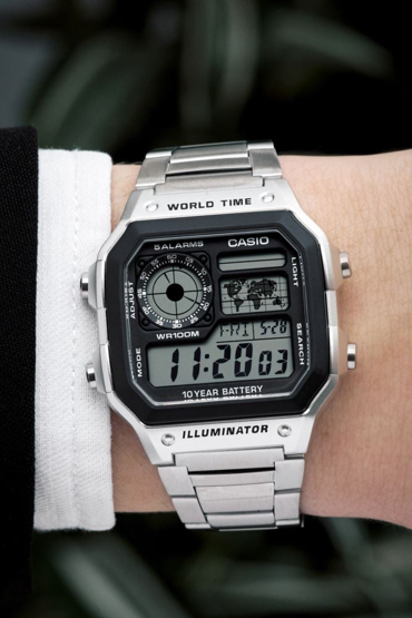 Casio AE-1200WHD-1AVDF Dijital Kare Kadran Metal Kordon Plastik Kasa 10 ATM Suya Dayanıklı Metalik Renk Erkek Kol Saati