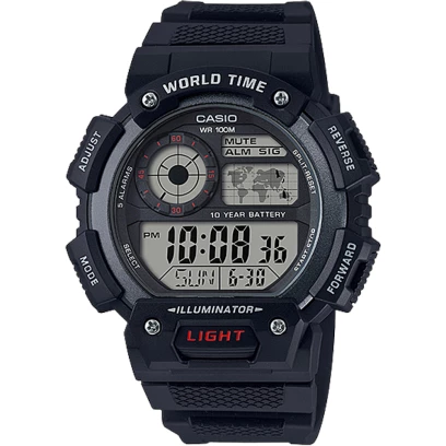 Casio AE-1400WH-1AVDF Alarm Kronometre Takvim Özellikli 10 ATM Suya Dayanıklı Silikon Kordon Siyah Erkek Kol Saati Çok Renkli