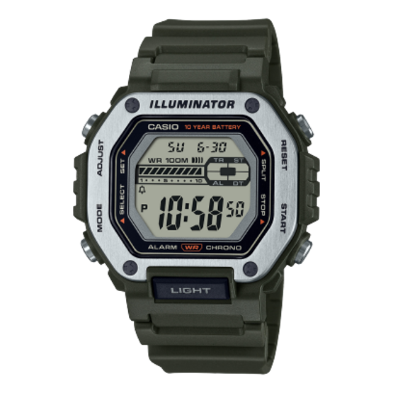 Casio MWD-110H-3AVDF Alarm Kronometre Takvim Özellikli 10 ATM Suya Dayanıklı Silikon Kordon Yeşil Erkek Kol Saati