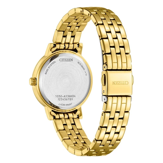 Citizen EL3102-50D Taşlı Tasarım Sedef Kadranlı Çelik Kordon Çelik Kasa 5 ATM Suya Dayanıklı Altın Renk Kadın Kol Saati