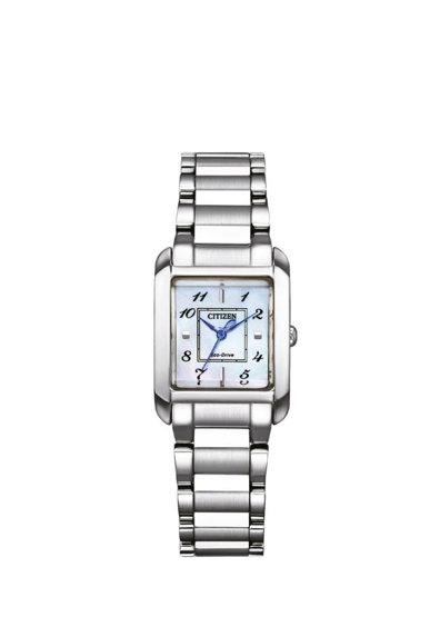 Citizen EW5600-87D Kare Kadranlı Safir Camlı Çelik Kordon Çelik Kasa 5 ATM Suya Dayanıklı Metalik Renk Kadın Kol Saati