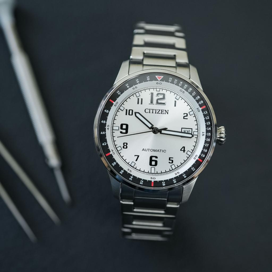 Citizen NJ190-51A Otomatik Mekanizmaya Sahip 10 ATM Suya Dayanıklı Çelik Kasa Çelik Kordon Metalik Renk Erkek Kol Saati