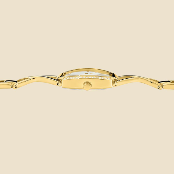 Kasa Çapı: 19,6 x 29 mm - Kasa Şekli: Oval - Kasa Materyali: Çelik - Kasa Rengi: Altın - Kordon Materyali: Çelik - Kordon Rengi: Altın- Kadran Rengi: Beyaz - Kadran Işığı: Yok - Taş: Var - Çalışma Şekli: Analog - Teknolojisi: Quartz - Takvim: Yok - Kronometre: Yok - Alarm: Yok - Cam Özelliği: Mineral - Özellik: - Su Geçirmezlik: 3 ATM - Garanti Süresi: 2 Yıl - Cinsiyet: Kadın