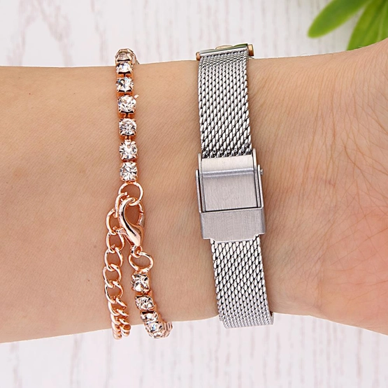 Kasa Çapı: 36 mm - Kasa Şekli: Yuvarlak - Kasa Materyali: Metal - Kasa Rengi: Rose Gold - Kordon Materyali: Hasır Çelik - Kordon Rengi: Metalik Gri- Kadran Rengi: Gümüş Tonu - Kadran Işığı: Yok - Taş: Yok - Çalışma Şekli: Analog - Teknolojisi: Quartz - Takvim: Yok - Kronometre: Yok - Alarm: Yok - Cam Özelliği: Mineral - Özellik: Bileklik Hediyeli - Su Geçirmezlik: 3 ATM - Garanti Süresi: 2 YIL - Cinsiyet: Kadın