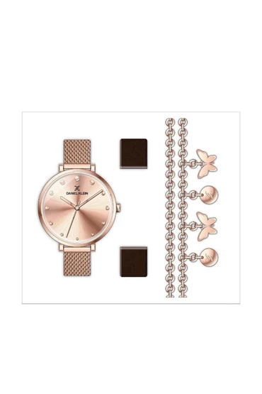 Daniel Klein DK.1.13025.2 Taşlı Tasarım 3 ATM Suya Dayanıklı Bileklik ve Kordon Hediyeli Rose Kadın Kol Saati