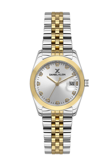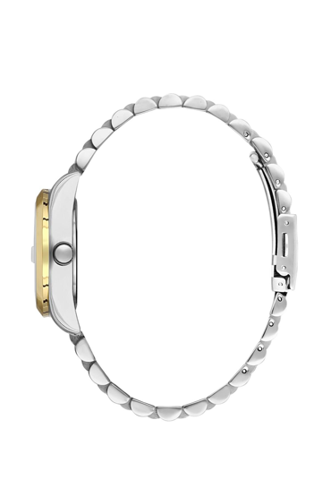 Kasa Çapı: 30 mm - Kasa Şekli: Yuvarlak - Kasa Materyali: Metal - Kasa Rengi: Gümüş - Kordon Materyali: Çelik - Kordon Rengi: Gümüş/Altın Rengi- Kadran Rengi: Gümüş - Kadran Işığı: Yok - Taş: Var - Çalışma Şekli: Analog - Teknolojisi: Quartz - Takvim: Var - Kronometre: Yok - Alarm: Yok - Cam Özelliği: Mineral - Özellik: Kordon Genişliği: 16 mm - Kasa Yüksekliği: 36,5 mm - Su Geçirmezlik: 3 ATM - Garanti Süresi: 2 YIL - Cinsiyet: Kadın