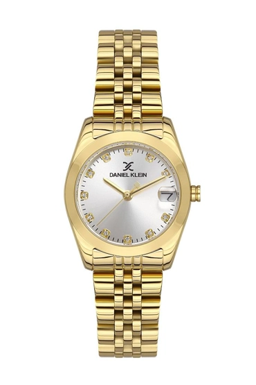 Daniel Klein DK.1.13493.2 Taşlı Tasarım Bombeli Takvim 3 Atm Suya Dayanıklı Altın Kadın Kol Saati