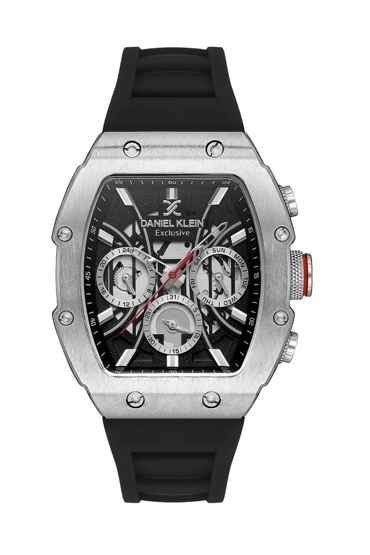 Daniel Klein DK.1.13638-1 Exclusive Dikdörtgen kasa Silikon Kordon Çelik Kaplama Siyah Erkek Kol Saati